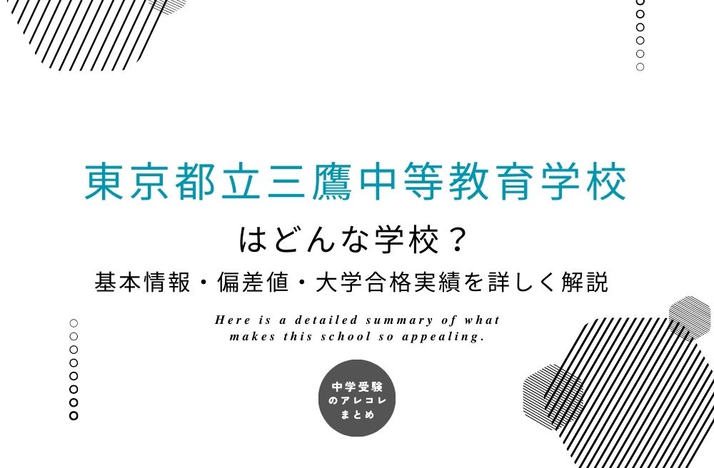 この記事では、東京都立三鷹中等教育学校の基本情報・偏差値・大学合格実績を詳しく解説しました。