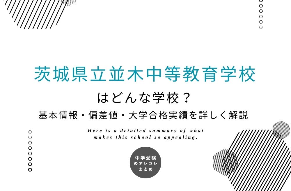 この記事では、茨城県立並木中等教育学校の基本情報・偏差値・大学合格実績を詳しく解説しました。
